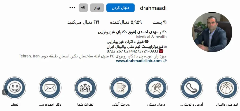 یکی از بهترین فیزیوتراپ های تهران , اقای دکتر مهدی احمدی دکترای فیزیوتراپی می باشند .ایشان انواع خدمات فیزیوتراپی را به بهترین نحو ممکن ارائه می دهند و در بین مراجعین, محبوبیت فراوانی یافته اند .برخی خدمات ایشان عبارتند از :